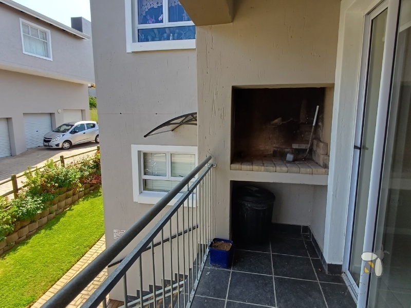 This first-floor apartment offers comfortable, lock-up-and-go living with a practical layout. It features 2 bedrooms and 2 bathrooms, including a main en-suite, as well as a spacious open-plan kitchen and living area that flows seamlessly onto the balcony with a built-in braai—perfect for relaxed entertaining.