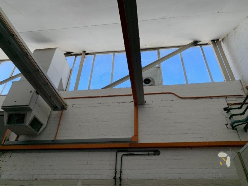 The unit includes two mezzanine offices overlooking the warehouse floor, offering dedicated workspaces and visibility. The open-plan ground floor can be adapted for office use, storage, or light industrial activities.
