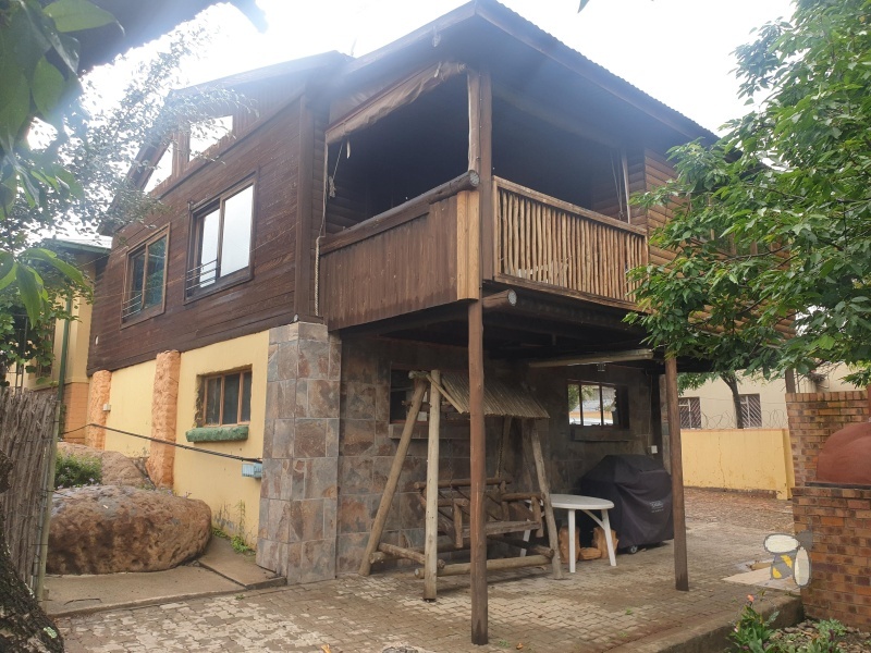 The kitchen features modern melamine cupboards, solid granite tops, and an electric oven/5 gas hob combo. A huge plus point is the indoor entertainment area, complete with a built-in braai and a built-in bar made from beautiful Rhodesian teak (sleeper wood). There is also a separate outdoor braai area.