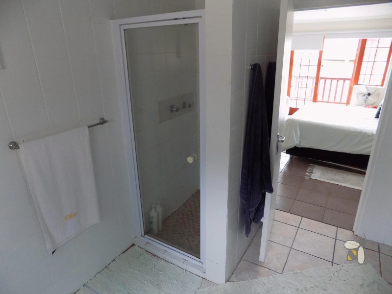 Die huis bied drie slaapkamers en twee volle badkamers (met beide ‘n stort en ‘n bad). Twee van die slaapkamers het groot houtdeure wat uitloop op die dek, wat veënde uitsigte oor die versorgde tuin en majestueuse berge bied.