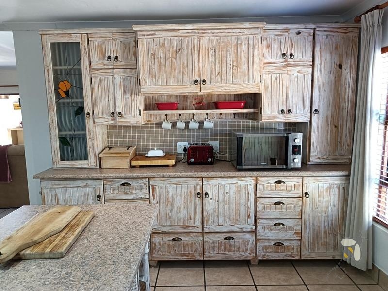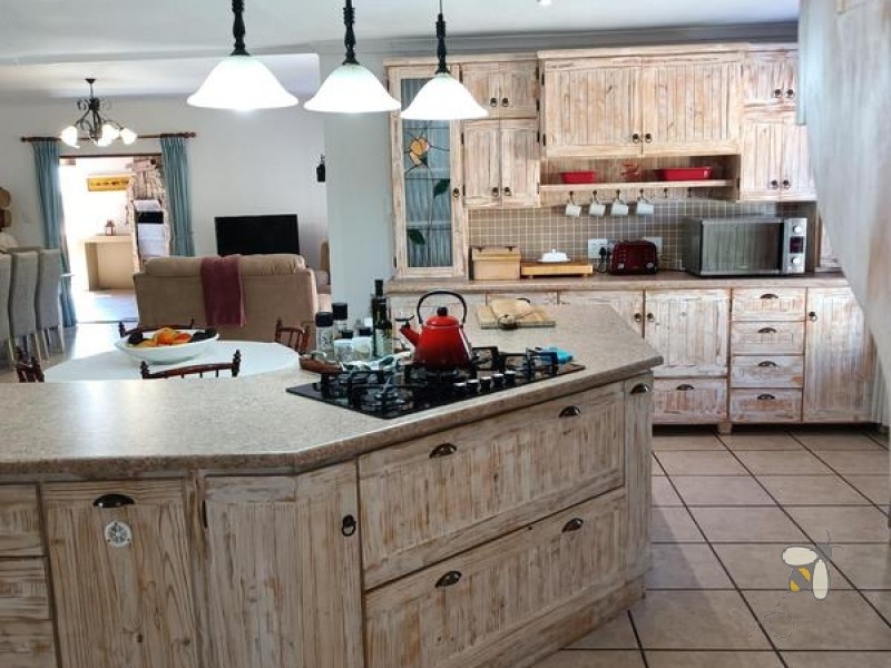Hierdie pragtige huis met sy netjiese, gevestigde en goed versorgde tuin wag net vir die regte eienaar om in te trek. Kom verken die ware plattelandse leefstyl in ‘n huis geleë in ‘n rustige omgewing. Die huis is groot en bestaan uit drie ruim slaapkamers. Elke slaapkamer is toegerus met plafonwaaiers en ingeboude kaste. Daar is drie badkamers, waarvan die hoofslaapkamer ‘n volledige en-suite is met ‘n stort, bad, toilet, en wasbak. Badkamer twee het ‘n stort, bad, en wasbak. Badkamer drie het ‘n aparte toilet vir privaatheid. Daar is ‘n studeerkamer wat omskep kan word in ‘n ekstra slaapkamer of ‘n werk-van-die-huis kantoorruimte. Die huis spog met ‘n televisie kamer en ‘n oop-plan ontwerp wat die leefarea, eetarea, en ‘n moderne kombuis verbind.