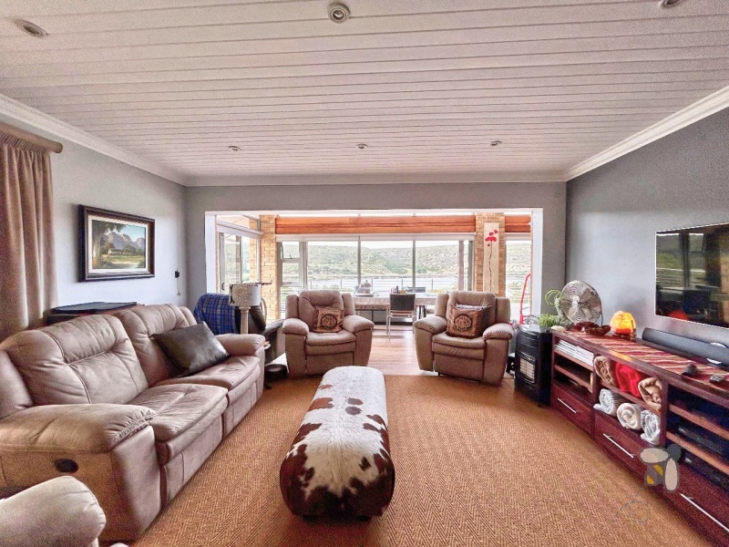Hierdie uitgestrekte 4-slaapkamer woning (‘n 3-slaapkamer hoofhuis en ‘n aparte woonstel) in die hoogs gesogte Stilbaai Hoogte kombineer ruim, lae-onderhoud lewe met asemrowende uitsigte oor die Goukourivier.