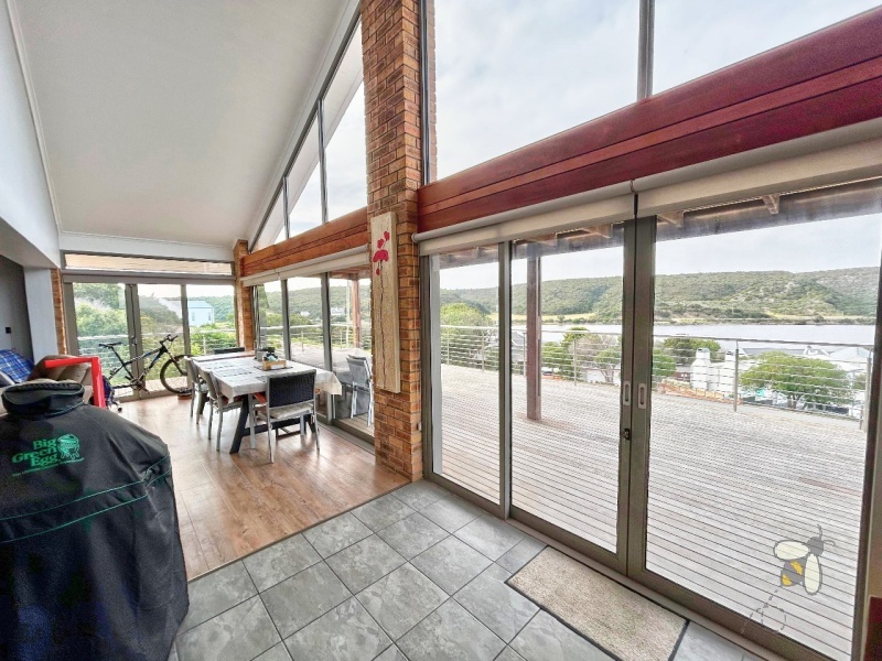 This expansive 4-bedroom residence (comprising a 3-bedroom main house and a separate flatlet) in the highly sought-after Stilbaai Heights combines spacious, low-maintenance living with breathtaking views of the Goukou River.