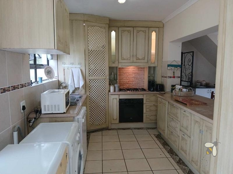 Die moderne kombuis is ontwerp vir beide funksionaliteit en estetika. Met ‘n gasstoof en oorgenoeg kaste, voldoen dit aan al jou kulinêre behoeftes terwyl dit sy oopplan-bekoring behou.
