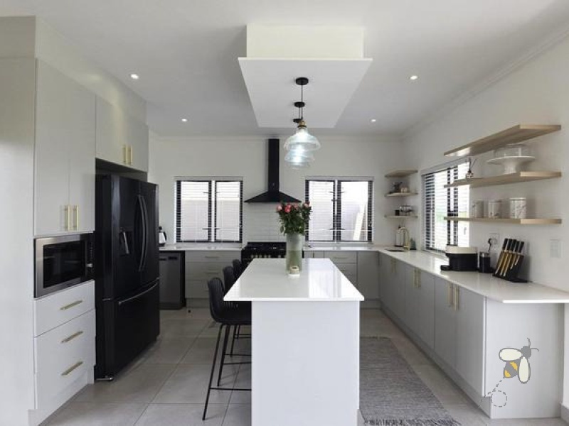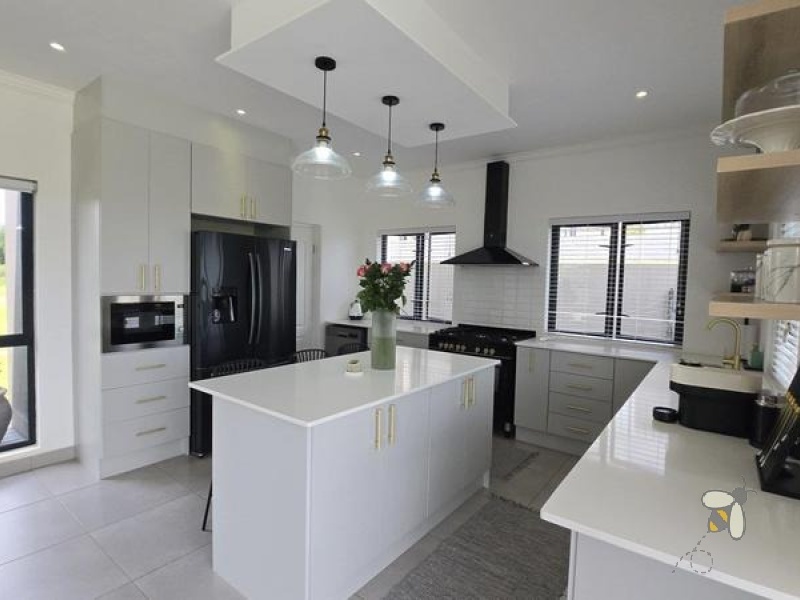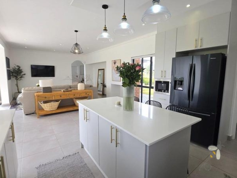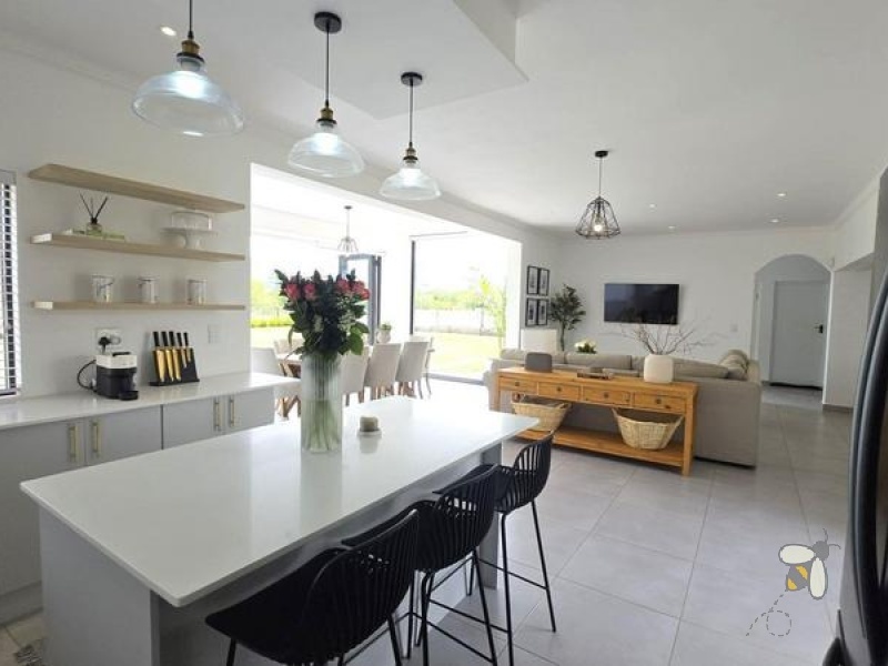 Die hart van die huis is die oopplan-ontwerp wat die kombuis, sitkamer en eetareas naatloos verbind. Hierdie uitleg is perfek vir onthaal of om kwaliteit gesinstyd te geniet. Die kombuis word aangevul deur ‘n gerieflike opwaskamer wat oorgenoeg ruimte bied vir al jou kulinêre behoeftes.