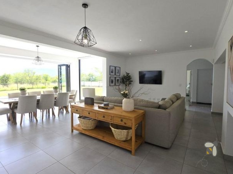 Stap buite na jou persoonlike oase, kompleet met ‘n vuurput en ‘n ingeboude braai, ideaal vir die aanbied van onvergeetlike byeenkomste. Die groot tuin bied asemrowende uitsigte en volop wildlewe, wat dit ‘n rustige toevlugsoord maak van die gejaag van die daaglikse lewe. Geniet ontspanne dae by die sprankelende swembad, omring deur die skoonheid van die natuur.