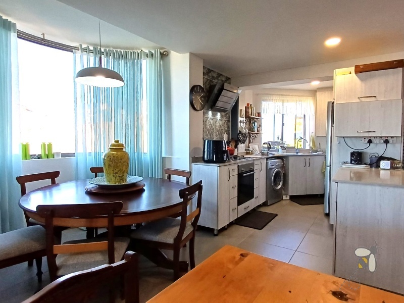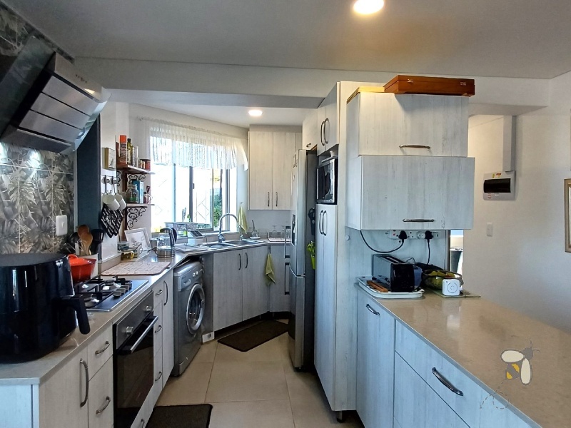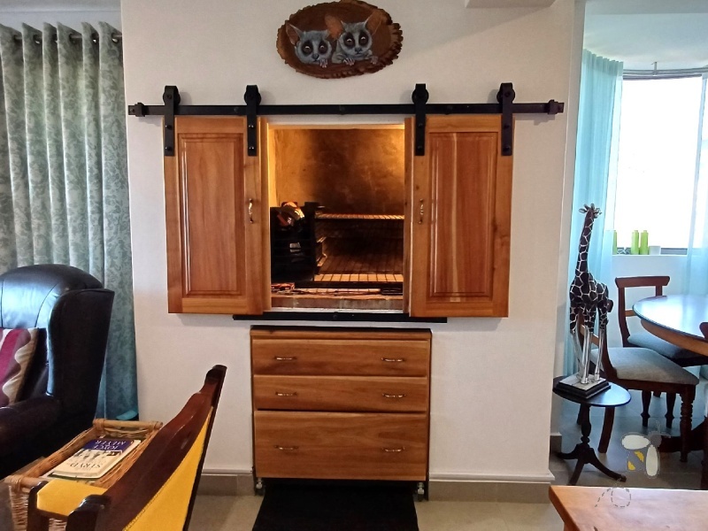 Enjoy cozy evenings around the built-in braai in the living area, complete with charming barn doors that add character. The modern kitchen features Caesarstone countertops and plenty of cupboard space – ideal for everyday living and entertaining.