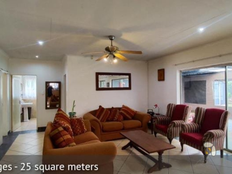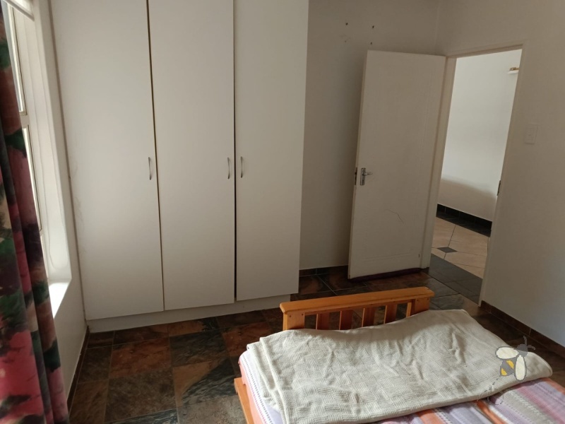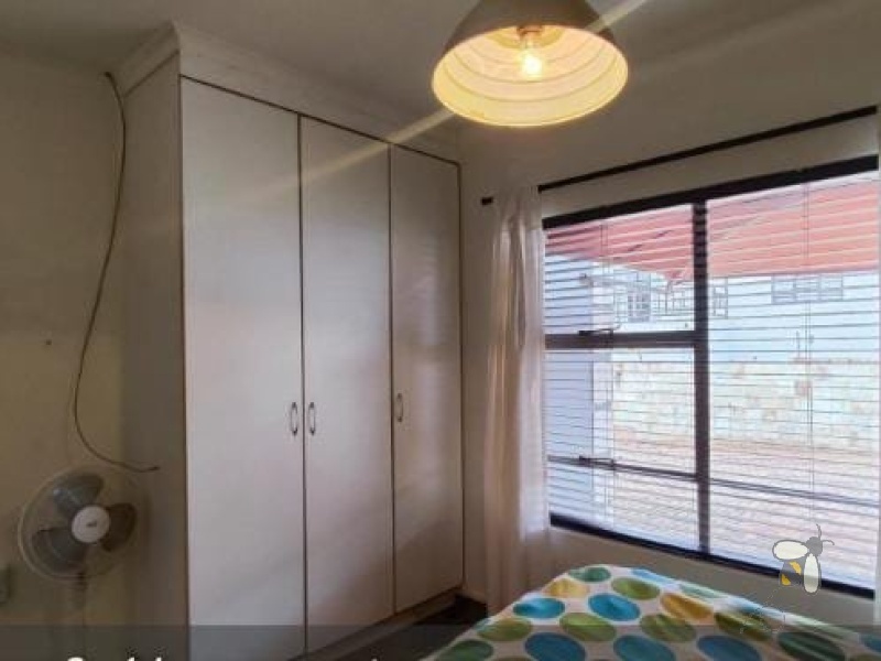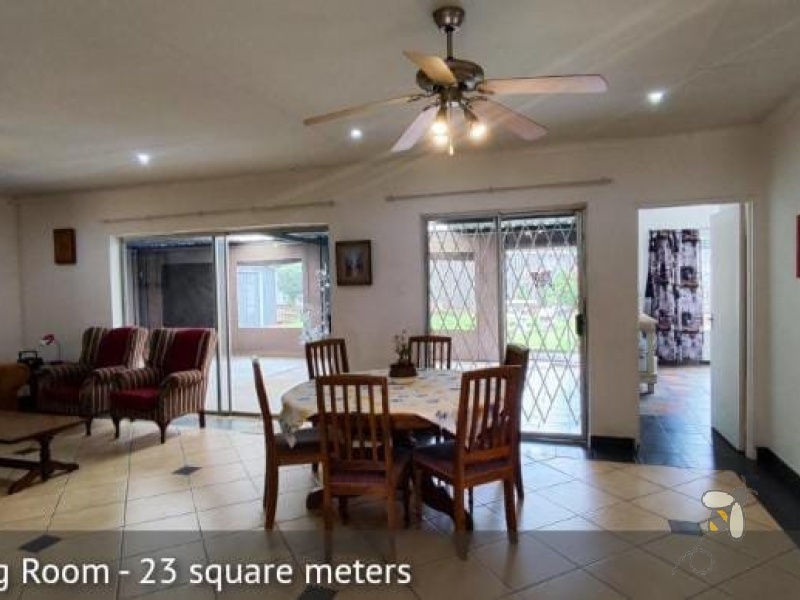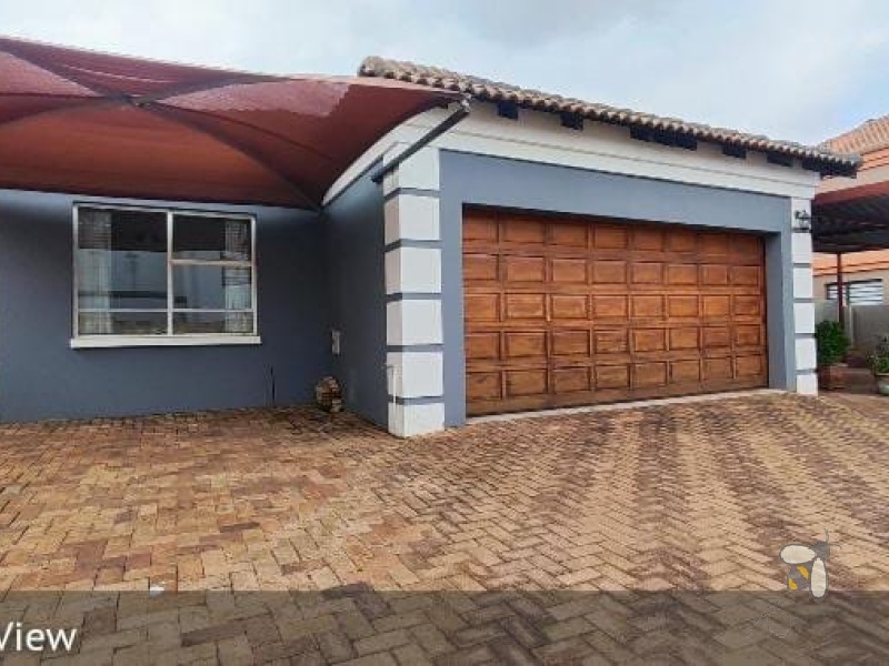 The dining and sitting rooms flow seamlessly together, creating a bright and airy living space ideal for entertaining. The sitting room opens onto a spacious, enclosed entertainment area via sliding doors, leading to a beautifully maintained, immaculate garden and a large, private yard. A garage and paved, secured yard provide ample parking space for multiple vehicles. Stay cool with air conditioning throughout the property. Enjoy the security of a gated community with 24-hour surveillance.
