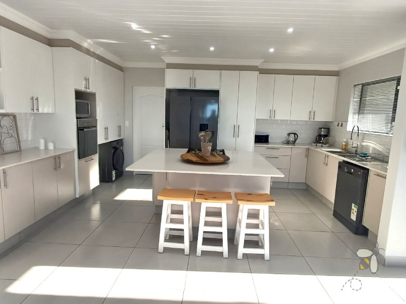 The gourmet kitchen will impress any culinary enthusiast, boasting contemporary finishes, ample storage. Ideal for entertaining, the indoor braai area flows effortlessly onto the patio through sliding glass doors—perfect for year-round gatherings.