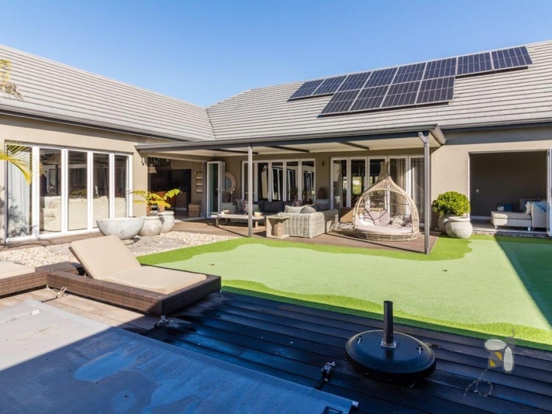 Situated in the prestigious Num Num Eco Estate, this luxurious 6-bedroom home offers the perfect balance of modern sophistication and sustainable living. Designed for families who value both comfort and privacy, the home is surrounded by indigenous fynbos and estate wildlife like springbok and bushbuck.