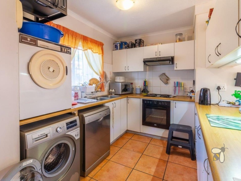 Beide slaapkamers is ruim en deel ‘n moderne, volledige badkamer. ‘n 5kW-inverter verseker gemoedsrus tydens beurtkrag, en ‘n toegewese motorafdak bied veilige parkering.