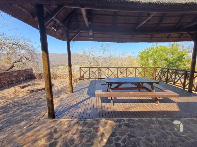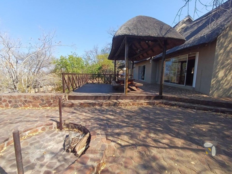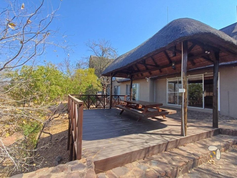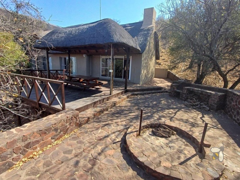 This charming thatched-roof house accommodates up to 11 people, blending rustic bushveld character with comfort. The main bedroom features a beautiful en-suite bathroom and a private deck overlooking the mountains and peaceful surroundings. A large open-plan kitchen flows into a spacious dining or living area, while a separate lounge with a fireplace provides a cosy retreat. Outside, an inviting entertainment area with a braai offers the perfect setting for social gatherings.