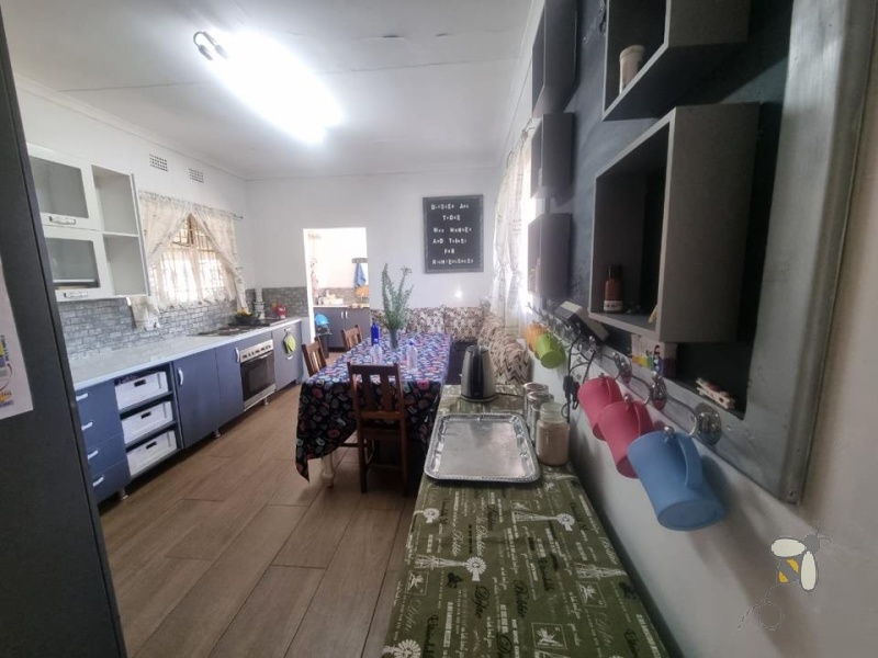 Die netjiese kombuis met aparte opwas loop na die oopplan-sitkamer en eetarea, wat ’n warm en uitnodigende atmosfeer skep. Deure lei na die pragtige tuin, waar ’n glinsterende swembad, ’n oordekte lapa en ingeboude braai wag — ideaal vir vermaak en gesinsnaweke.