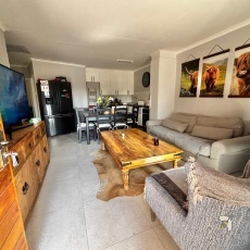 Die huis is ontwerp vir maklike alledaagse lewe, met drie goed-grootte slaapkamers en twee badkamers, insluitend ‘n hoof en-suite. Die hart van die huis is die oop-plan sit- en eetkamerarea, wat ‘n ruim gevoel skep en moeiteloos oorvloei in ‘n funksionele kombuis—perfek vir kook en informele onthaal.
