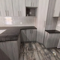 Die kombuis is ‘n sjef se droom, afgewerk met granietbladblaaie, ‘n 5-pits gaskookplaat met elektriese oond, en ‘n instapspens vir oorgenoeg stoorplek. Die aparte opwaskamer bied ruimte vir drie toestelle en direkte toegang tot die dubbelmotorhuis.