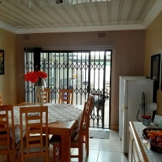 Hierdie eiendom is ideaal vir ‘n groot gesin of om as ‘n gastehuis gebruik te word. Dit is op ‘n hoek erf met twee ingange geleë. Al die 6 slaapkamers het ingeboude kaste, en die hoofslaapkamer het sy eie en-suite badkamer.
