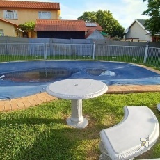 Die buite-area is ideaal vir genot: ‘n pragtige patio is langs die mediumgrootte swembad (wat volledig omhein is en ‘n soliede bedekking insluit). Daar is ‘n onthaalarea met ‘n ingeboude braai vir hele jaar onthaal.
