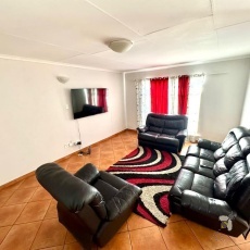 Daar is drie ruim slaapkamers, almal toegerus met moderne melamienkaste. Die meenthuis sluit twee en ‘n half badkamers in; een hiervan is ‘n volle en-suite badkamer gekoppel aan die hoofslaapkamer.