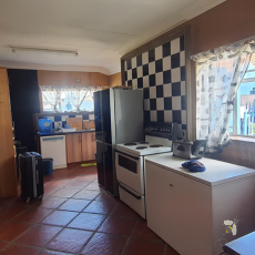 U betree die eiendom via ‘n motorhek, beveilig deur omtrekbalke wat verseker dat niks verbygaan nie. Die binnekant beskik oor ‘n goed geplaaste, moderne kombuis met ingeboude eenhede, teëlvloere, en ‘n lieflike opwaskamer wat agter weggesteek is.