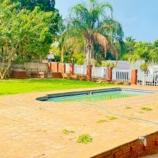 Geniet daardie warm somerdae in jou sprankelende blou swembad, geleë binne ‘n veilige en ruim erf—perfek vir gesinspret en ontspanning.