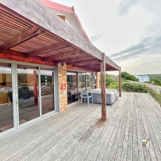 This expansive 4-bedroom residence (comprising a 3-bedroom main house and a separate flatlet) in the highly sought-after Stilbaai Heights combines spacious, low-maintenance living with breathtaking views of the Goukou River.
