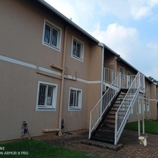 The kitchen is a spacious open plan area with built in cupboards and a four plate stove with an oven hub and extractor fan. The lounge is also a spacious open plan design. For parking features, the complex is secured with a double shaded net.