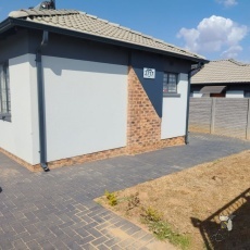 Hierdie kontemporêre woning, geleë in die voorstedelike omgewing van Roodeplaat, bied ‘n noukeurig onderhoude buitekant met ‘n moderne estetika. Die eiendom beskik oor ‘n grys en donkergrys fasade aangevul deur aantreklike baksteen-besonderhede en ‘n teeldak. Uitgestrekte donkergrys geplaveide paadjies lei na die ingang, wat deur ‘n hek beveilig word en deur ‘n afdak beskut word, wat beide voorkoms en funksionaliteit verbeter. ‘n Sonwaterverwarmer dra by tot energiedoeltreffendheid.