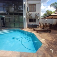 Geleë by 86 Hammerkopstraat, Thabazimbi, bied hierdie indrukwekkende eiendom ‘n ten volle toegeruste en inkomste-genererende besigheidsgeleentheid. Die perseel bestaan uit 15 gemeubileerde slaapkamers, elk met ‘n en-suite badkamer. Twee van die kamers is selfsorg-eenhede met ’n klein kombuis, eetgerei en toebehore. Daar is ook drie volledige badkamers met beide ‘n bad en stort.